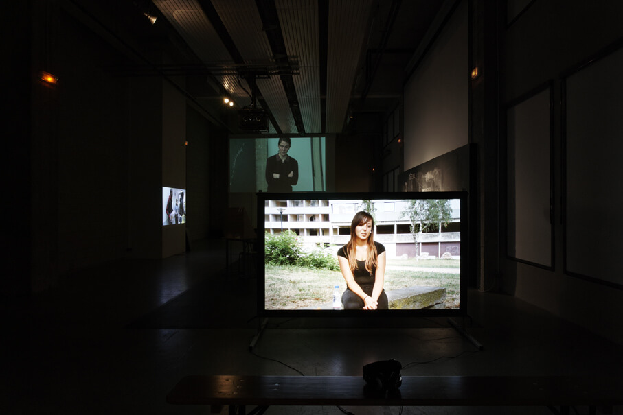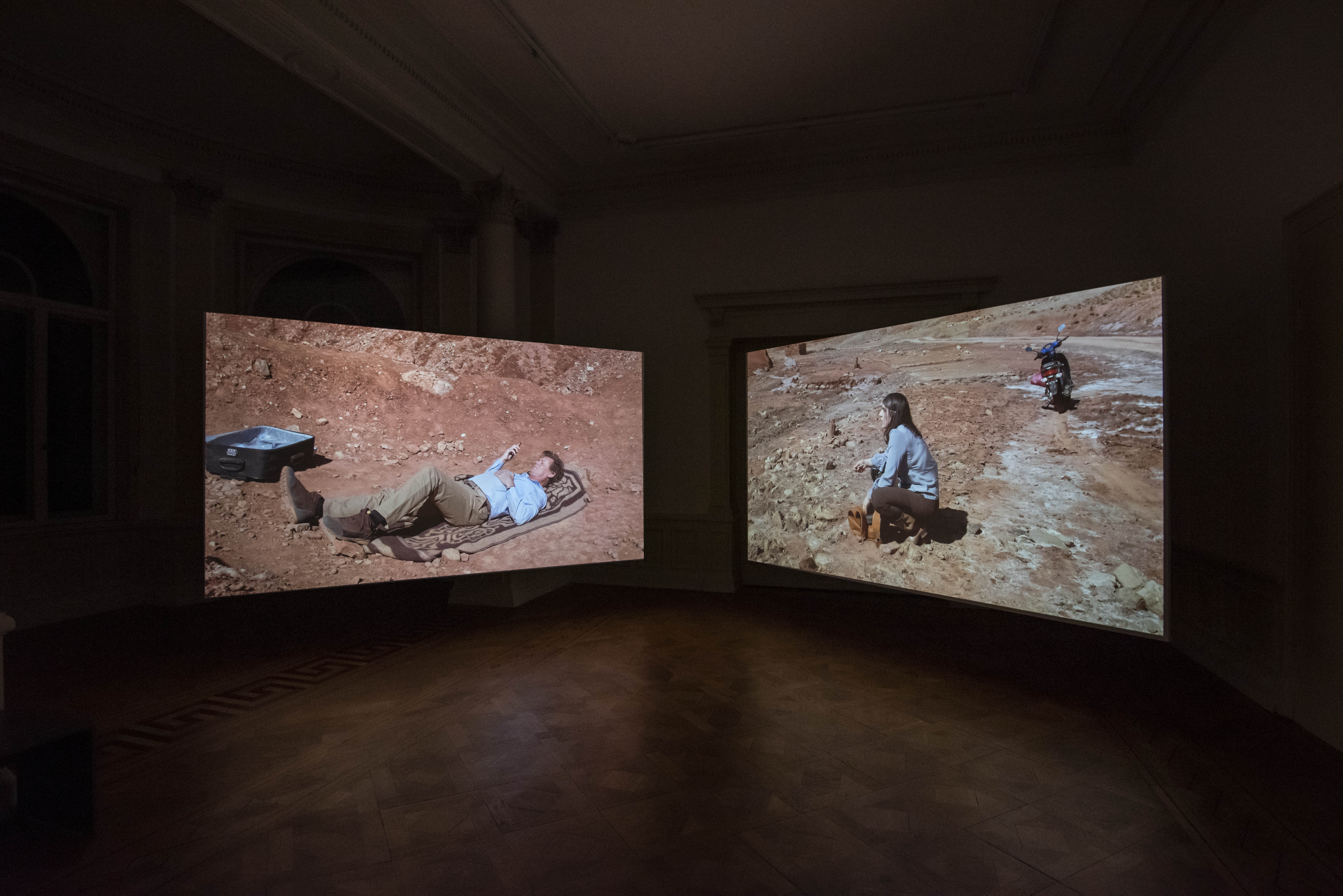 Frédéric Moser & Philippe Schwinger, France, détours. Episode I. Devoir et déroute, 2009, vidéo on blu-ray, color, sound, Dialogues in French, English Subtitles, 16:9, Ed. of 5 + 2 A.P., 26 min 36 sec. Exhibition view at Bétonsalon, Paris, France, 2011 (photo: Aurélien Mole).