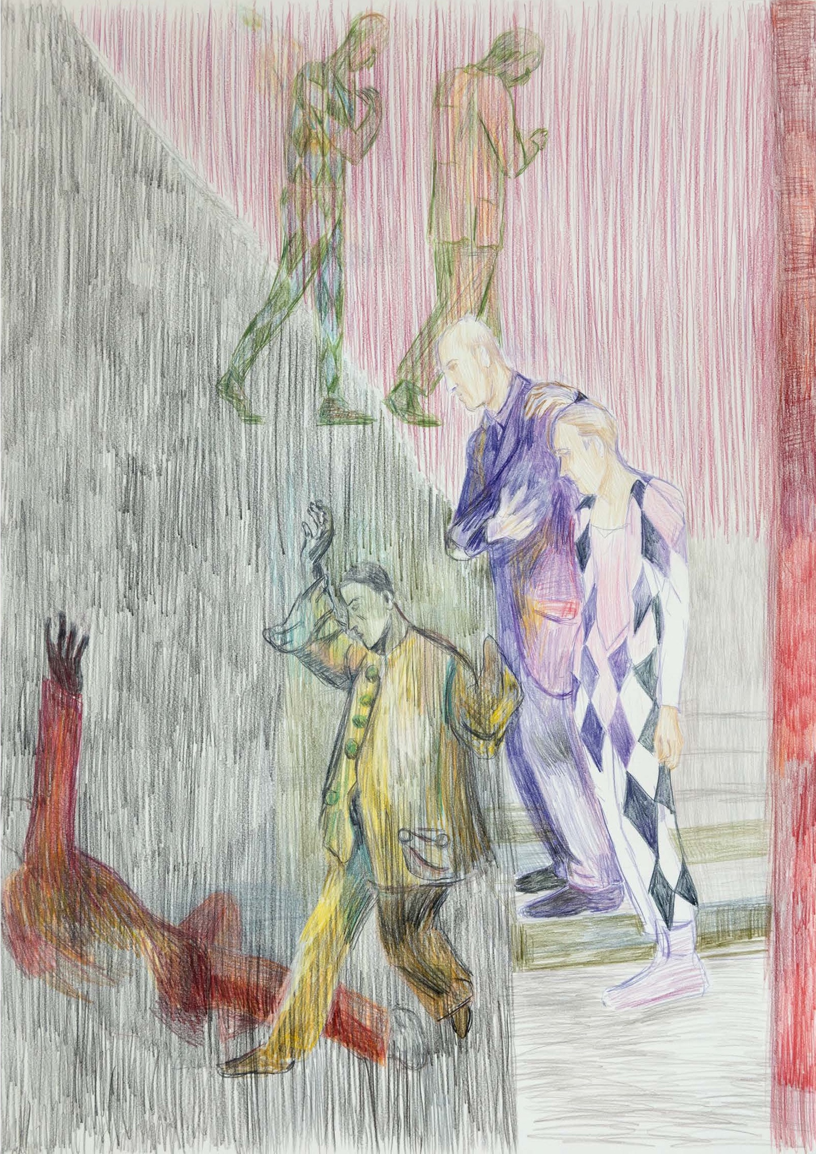 Prinz Gholam is an artistic duo, working together since 2001 and based in Berlin, Germany. Wolfgang Prinz was born in 1969 in Leutkirch, Germany. Michel Gholam was born 1963 in Beirut, Lebanon. They have developed an artistic practice based on performative and collaborative processes that result in live performances, videos, and installations incorporating drawings, objects, photographs, and text. Their work is an ongoing attempt to reactivate, relocate, and negotiate the self and the body between their cultural constructs and the world in which we live. It consists of choreographic or visual arrangements in which Prinz Gholam use and reinterpret a range of images and postures taken from historical paintings and sculptures, films and media sources. In this way Prinz Gholam draws attention to the political and social dimensions of the human body, as seen through the history of its representation.