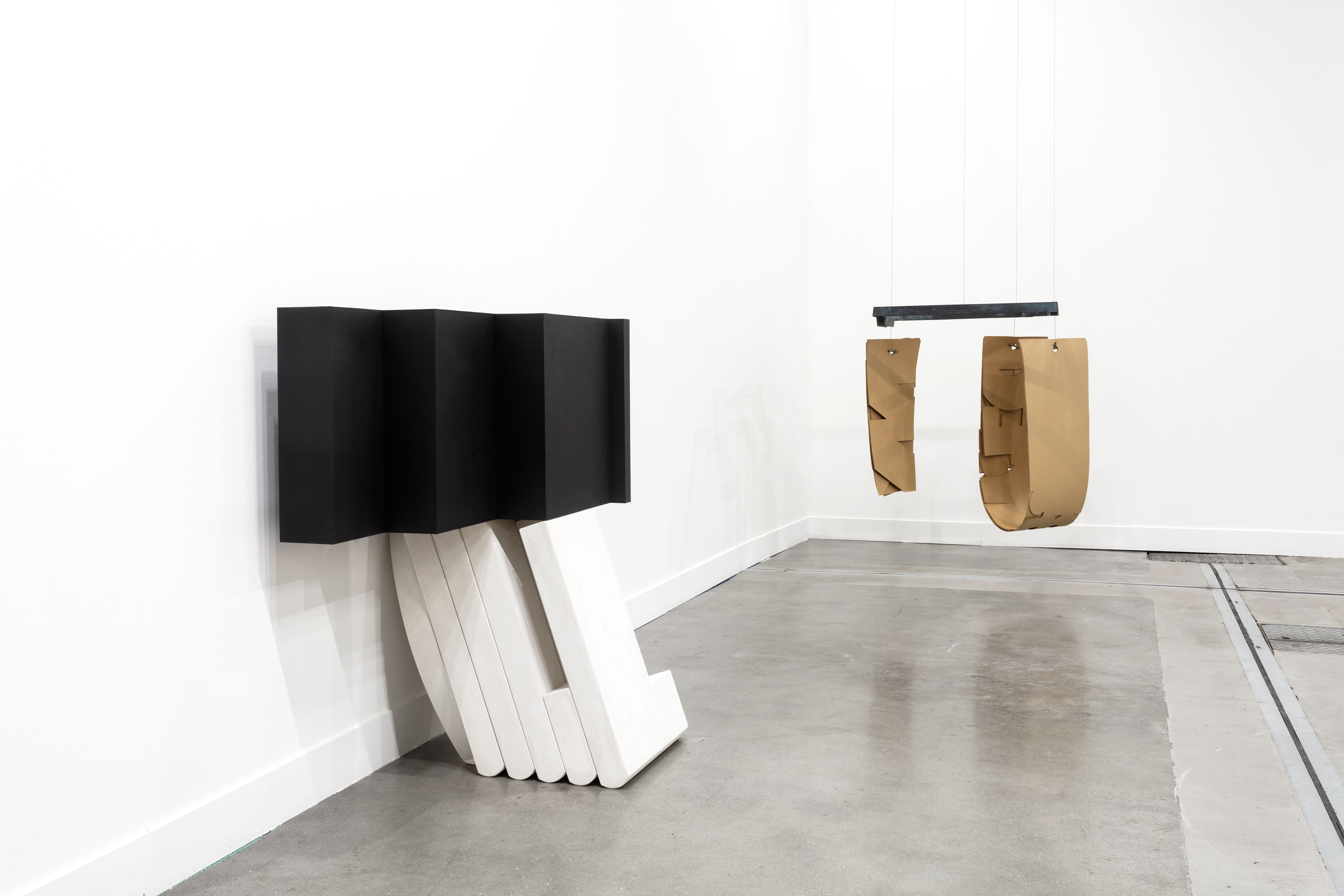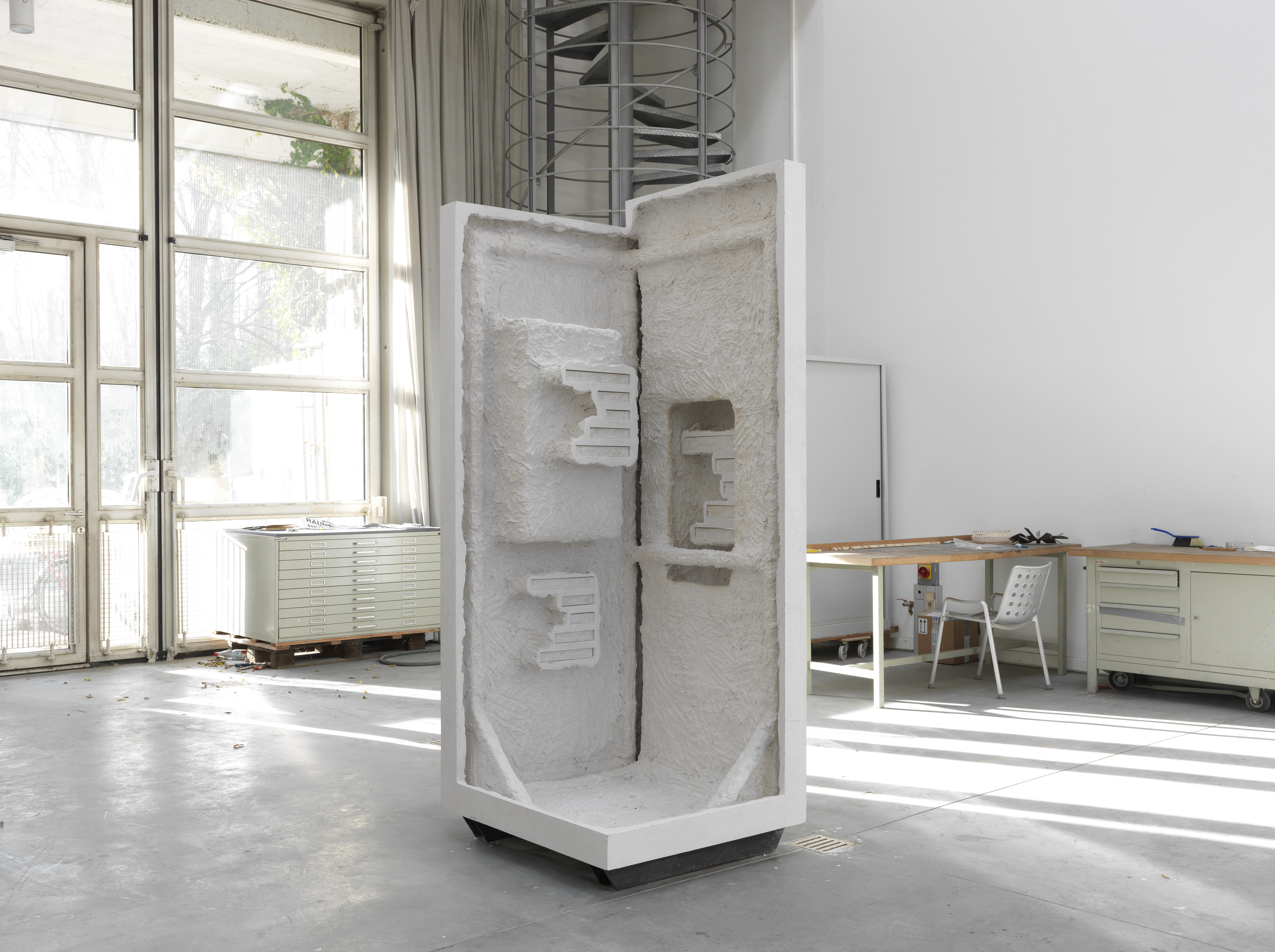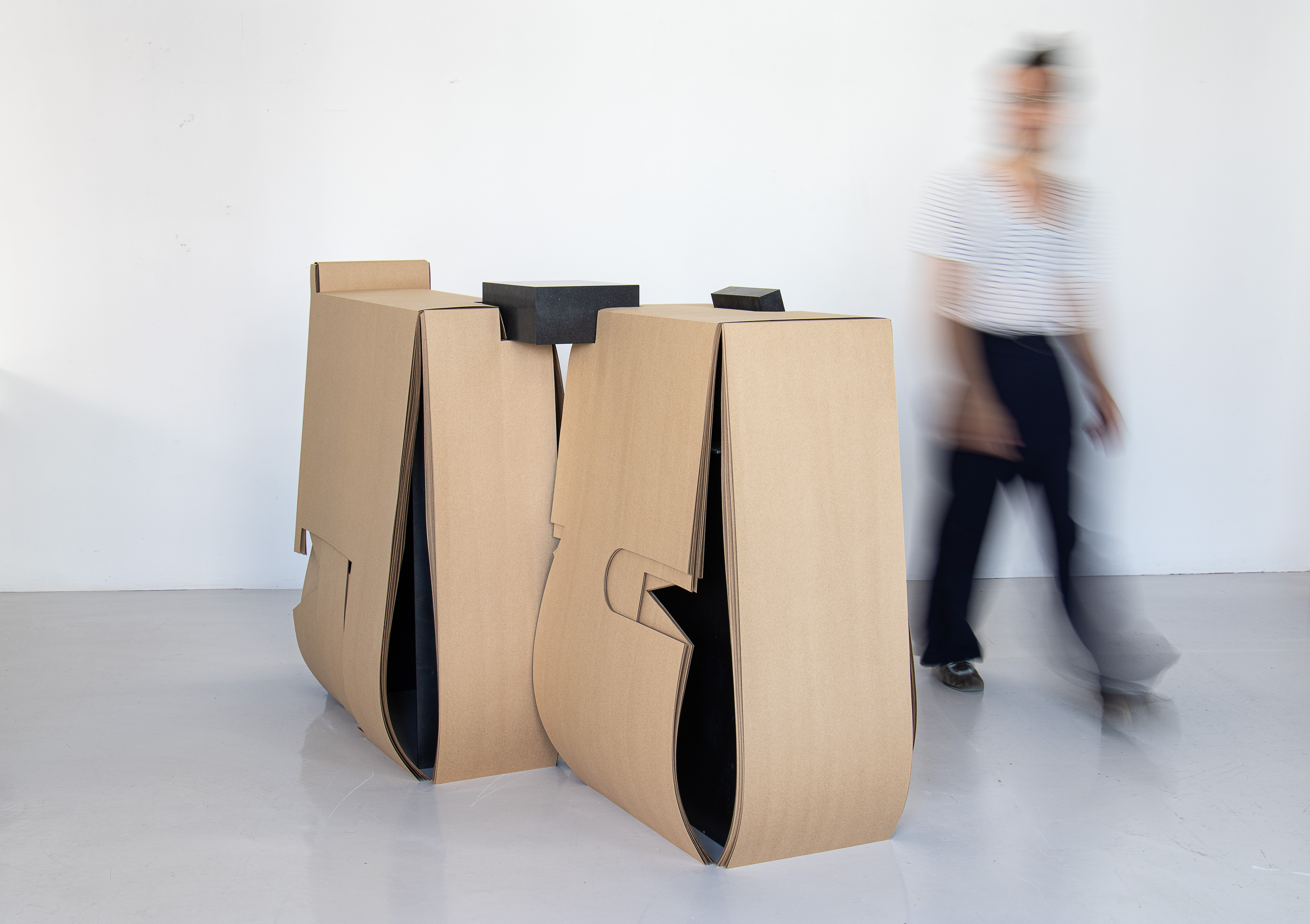 Since the mid-1980s, Harald Klingelhöller has placed the link between sculpture and language at the centre of his work. Employing a different materials, ranging from fragile paper, cardboard and glass mirror to heavy steel and granite, his work creates a formal and conceptual connection between narrative elements and the visual arts. The metaphoric and poetic linguistic constructions that preceded his sculptural work are often more than just the titles of the respective works, and are tied in with the sculptures which vary widely in terms of form. His sculptures can be seen as the three-dimensional transcription of written and oral language, playing on intonation, repetition and variation, as well as the linear flow of the letters. The titles of his works and the words he uses in his sculptures derive from various contexts: the press, poems, medical or legal texts. He defines himself as “a linguistic flaneur.”