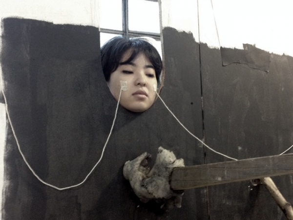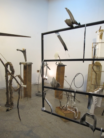 We are very pleased to present a series of new sculptures which are assembled to a situation and complemented by a performance created by the Argentinian artist Diego Bianchi. On On On Indetermination is a theatrical scene stopped (not frozen just stopped as an open non time moment) where objects and sculptures are on a same level as a body, parts of a body, and small movements of a body. Three performers of different racial origins will be involved in this scene. The performers have to play each day a different role. The main narrative situation is a person on the floor “posing” in unnatural postures (between a posed or accidental posture) having an abstract relation with the sculptures and objects in the scene, this person is doing small and imperceptible movements all the time. In one of the walls, there is a face just appearing, looking at the situation and working with mouth gestures or speaking in chinese. On the opposing side a person is appearing on the top of the wall working with eye gestures and also talking sometimes in his/her language. **Artist statement** Come upon your own waste as if it were absolutely unknown. As if the value of things resided in their potential handling and in their ability to witness indolence, use, and decay. Some tiny possibility of endurance. The soft power is intense: that which bends and yields endures. A frozen theatrical situation is a dismantled fiction. Persons and objects squandering time, inserted in the logic of an absurd dialogue that holds them together before the void. For years I have observed the transformation of daily consumer items after being used. I have observed the inter relationship between nature and social behaviors, the rise and decline of urban and biological situations, the catastrophes, accidents and randomness generate unheard versions of order. The traces of usage or the passage of time and the heuristic of objects. (Diego Bianchi)