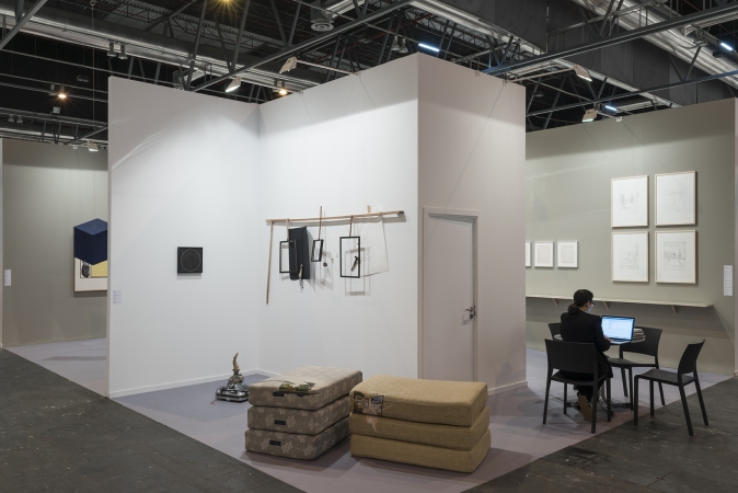 Francisco Tropa, Putting creative people together, 2011, Painted wood, string. Francisco Tropa, Panta Rhei, 2016, silkscreen screen print, silk screen rearangeable cut-out elements, wooden frame, glass. Franz Erhard Walther. Rahmenzeichnung, 3 pieces, 1963, Pencil on paper. Versuch, eine Skulptur zu sein, 1958 / print 2010, Inkjet print on photo paper, black and white. Schraffurzeichnung, 1959, Graphite on paper. Materialbild Gelb, 1960, Cardboard, mousseline, paste, paint. Printemps, Eté, Automne, Hiver, Wortzeichnungen series, 1957/58, Pencil on paper. From Sternenstaub n°16, drawing in my studio, Düsseldorf, Talstrasse 69, 1964, 2011, Pencil on paper. Ph. Roberto Ruiz