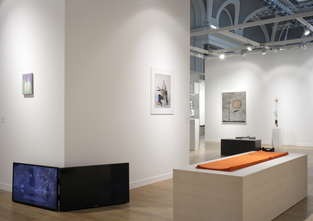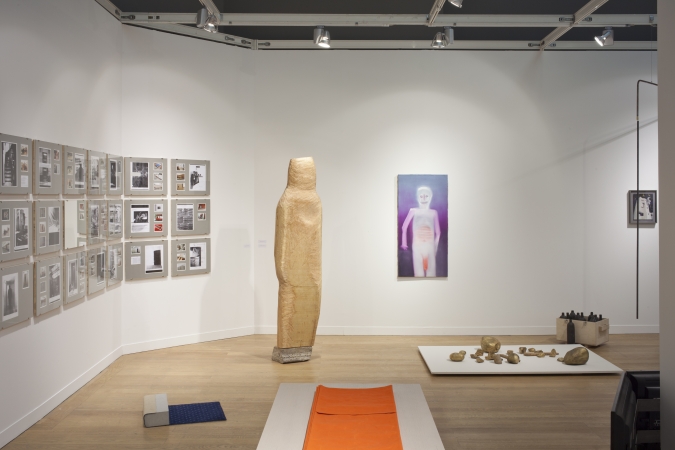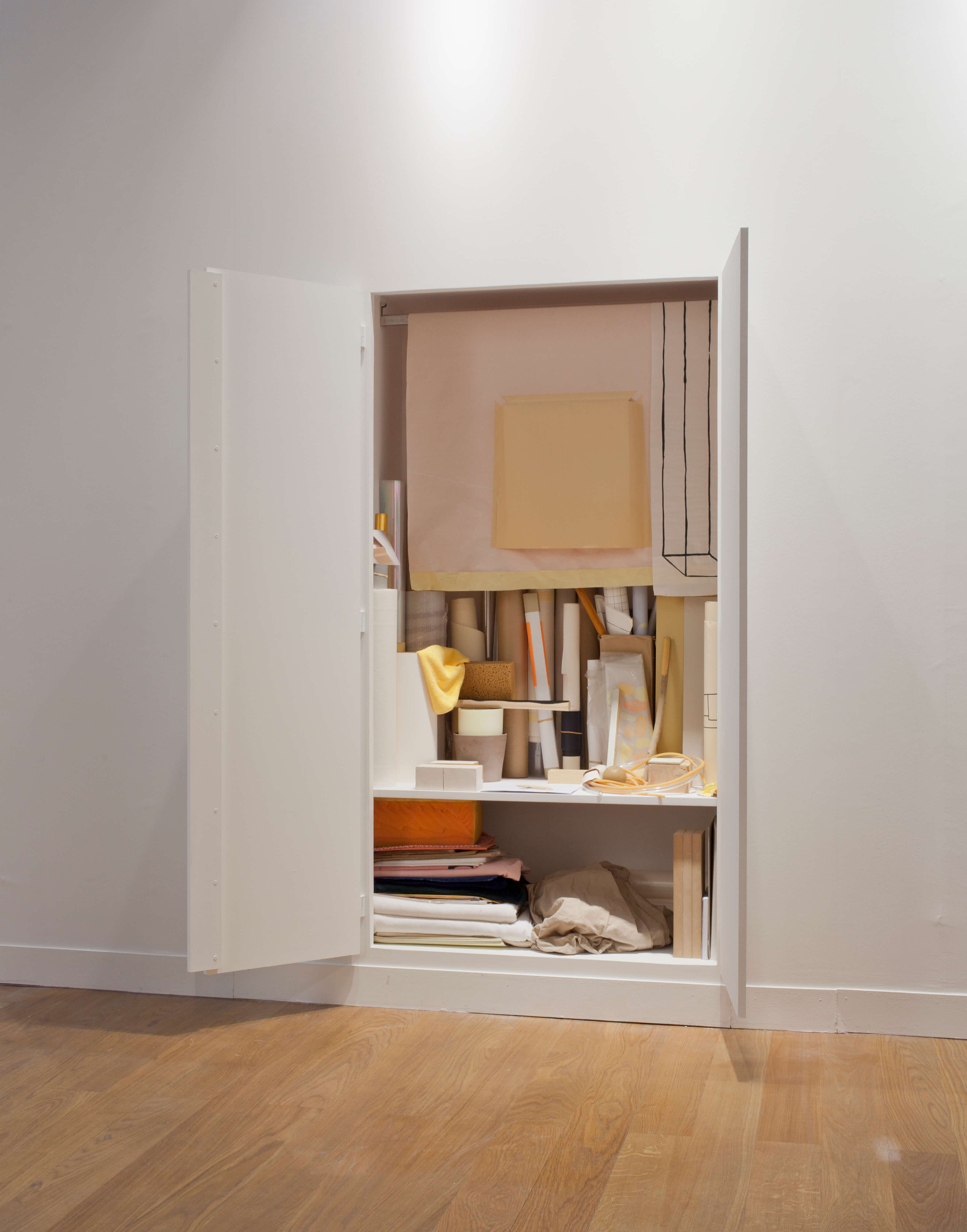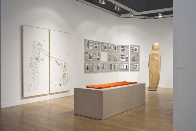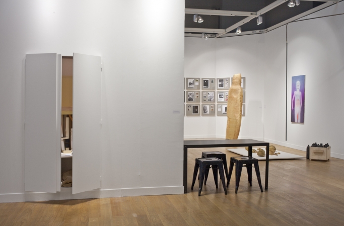 Elodie Seguin, Contenu, 2013, plywood painted white and various objects, unique, 186,5 x 102,8 x 51,3 cm. View of the installation at Fiac, Paris, France, 2013.