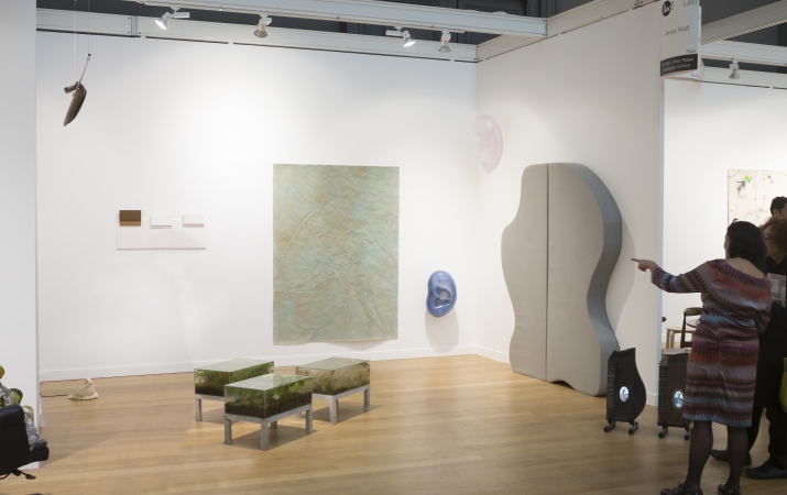 Katinka Bock, Population I, 2015, ceramics, steel. Elodie Seguin, n° 50, 2016, wood, plaster, polyurethane paint, water-based ink. Isa Melsheimer, Wardian Case (Vienna), Wardian Case (Lisbon), Wardian Case (Vatican City), 2016, reinforced concrete, glass, ground, seeds, plants. Guillaume Leblon, Chemtrail III, 2012, pastel on paper. Guillaume Leblon, Portrait, 2016, hand-blown opal glass (pink iridiscent blue). Guillaume Leblon, Portrait, 2016, hand-blown opal glass (pink). Franz Erhard Walther, Körperformen HELLGRAU, 2006, sewn dyed cotton fabric, foam, nettle cloth. Prinz Gholam, Two Citharas, 2015, zithers, video loop, sound.