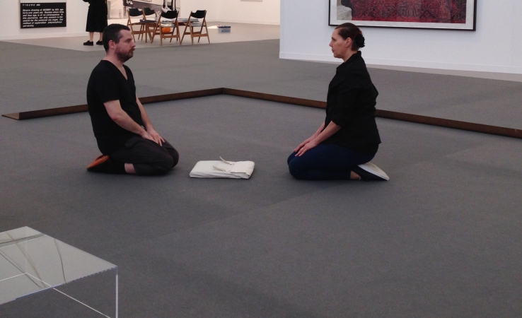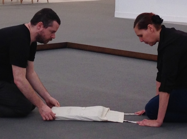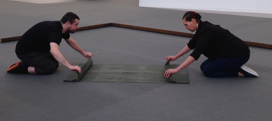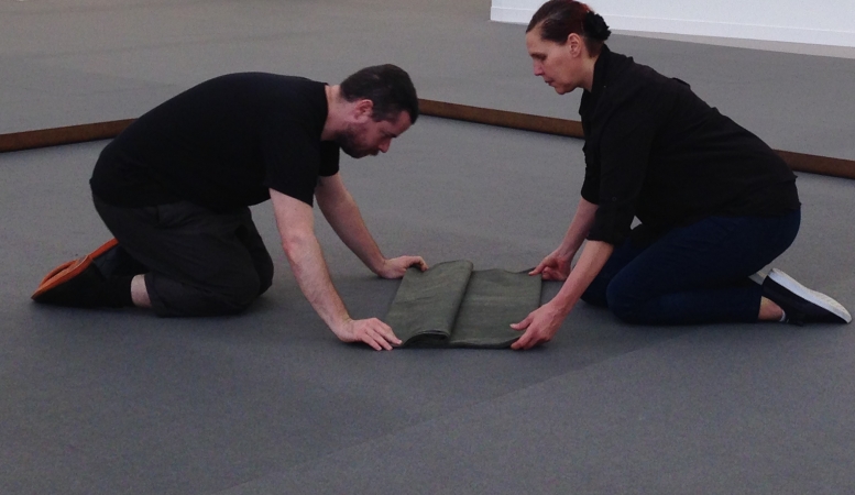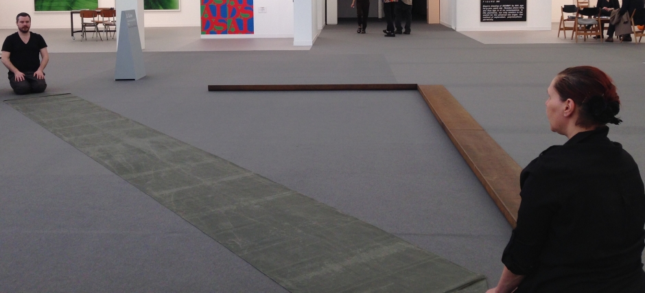 Frieze Art Fair, London At Frieze Live we are pleased to exhibit two works by Franz Erhard Walther : Sehkanal, 1968 Element No 46 from the 1. Werksatz and Winkel, 1975, a steel sculpture will both be exhibited in an open situation inside the fair tent, with trained performers activating the sculptures and inviting the public to engange in the art works. Franz Erhard Walther is a pioneer of minimal and conceptual art, introducing the action as a form of creation and reception in 1963. He has commited himself to the concept of sculpture as performance and participation, the notion that art is a collaborative event in which artist and public contribute on an equal footing. For Walther the meaning of a work has been what results from this collaboration. His objects and installations address their viewers with partly tactile, partly intellectual stimuli; they trigger the temptation to act, the desire to experience things in a physical way, and question their viewers’ positions in space and in relation to each other. As evolved over the last decades, Walther’s oeuvre presents an exemplary variety of methodological approaches. It also illustrates the difficulties faced by any form of art that hopes for participation on the part of the public, with the intention of making the appreciation of art a more collective, democratic enterprise. The objects stitched out of fabric from his “First Work Set” (1963–69) can be seen as the sculptural consequence of this search for a dynamic dimension in his plastic work, one that also characterizes his architectonic space modules of the 1970s.