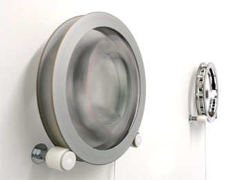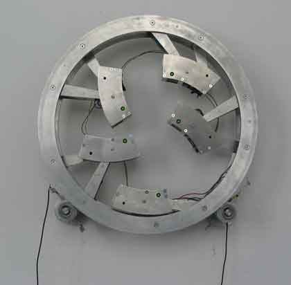 Julius Popp > micro.eva > 2002 > aluminium, stainless steel, custom electronics > 40 cm > View from the exhibition at Galerie Jocelyn Wolff > 2005