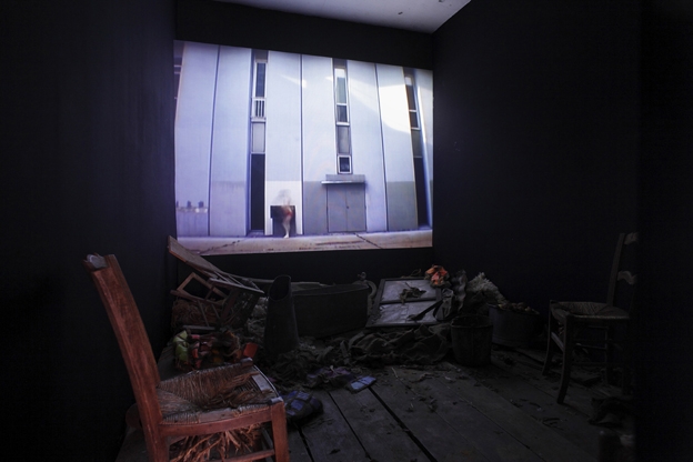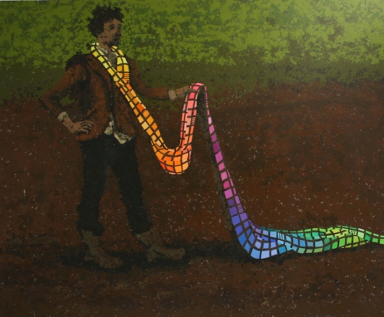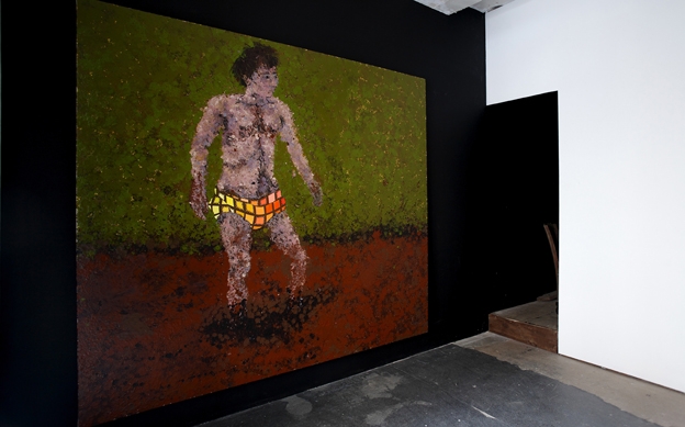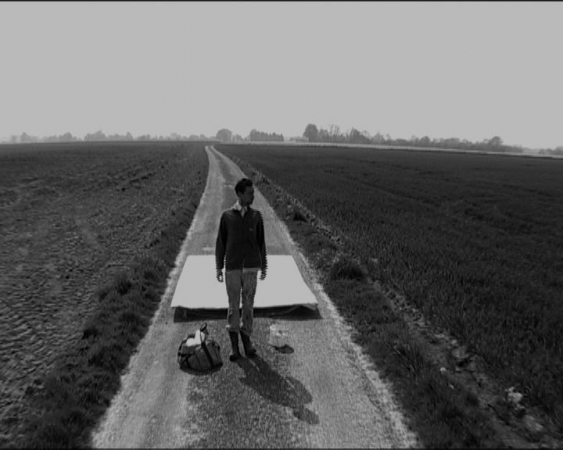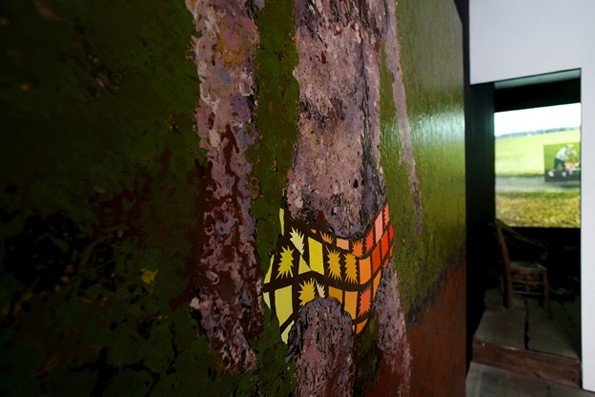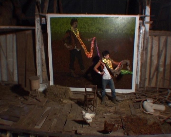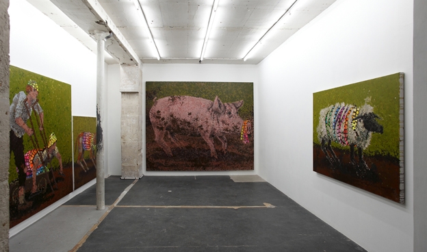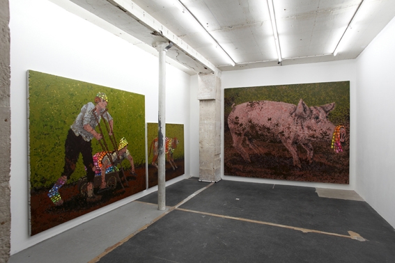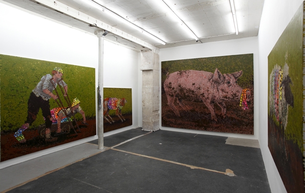 Very first solo exhibition by recently graduated French artist Eric Dizambourg. Eric will present an installation including his latest film and a series of paintings. Sur une invitation de Guillaume Leblon, la galerie Jocelyn Wolff montre le travail d’un très jeune artiste, Eric Dizambourg, diplômé de l’Ecole des Beaux-Arts de Paris. L’exposition s’articule autour d’un nouveau film d’Eric Dizambourg, Le Mouton noir, qui mêle aspects burlesques et performatifs, dans un va-et-vient constant entre la campagne, la grange, et un décor urbain. Le décor de grange présent dans le film déborde l’écran dans une installation, de même que les peintures qui apparaissent dans le film forment la série exposée dans l’espace de la galerie. (English available within a few days)