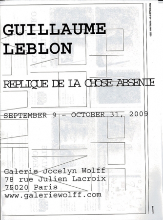 Réplique de la chose absente, 2009