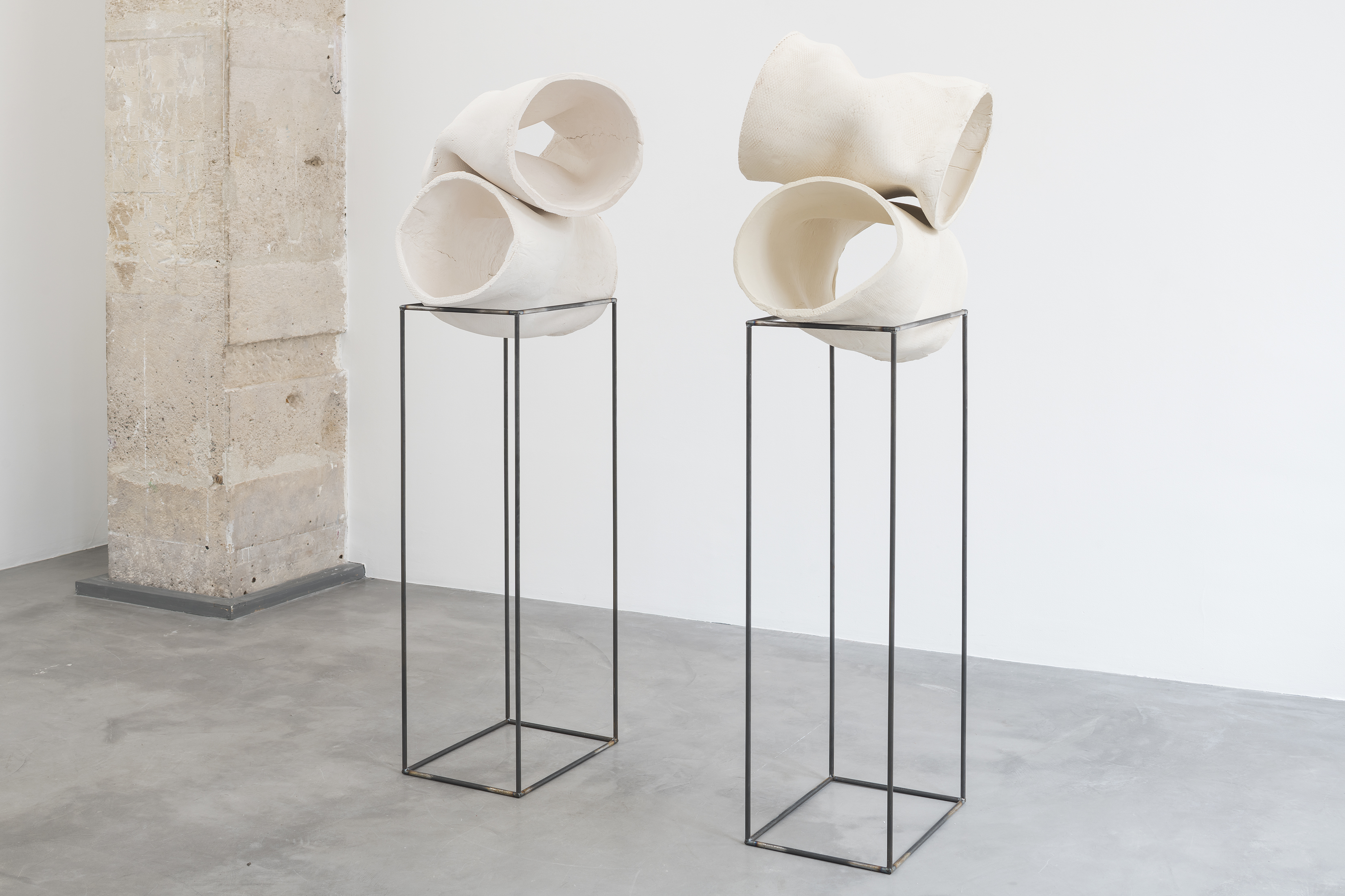 Katinka Bock, Frida and Friedrich, duo, 2019, ceramic, steel 1/2: overall (ceramic + steel pedestal): H 154 x 48 x 50 cm 2/2: overall (ceramic + steel pedestal): H 154 x 45 x 50 cm