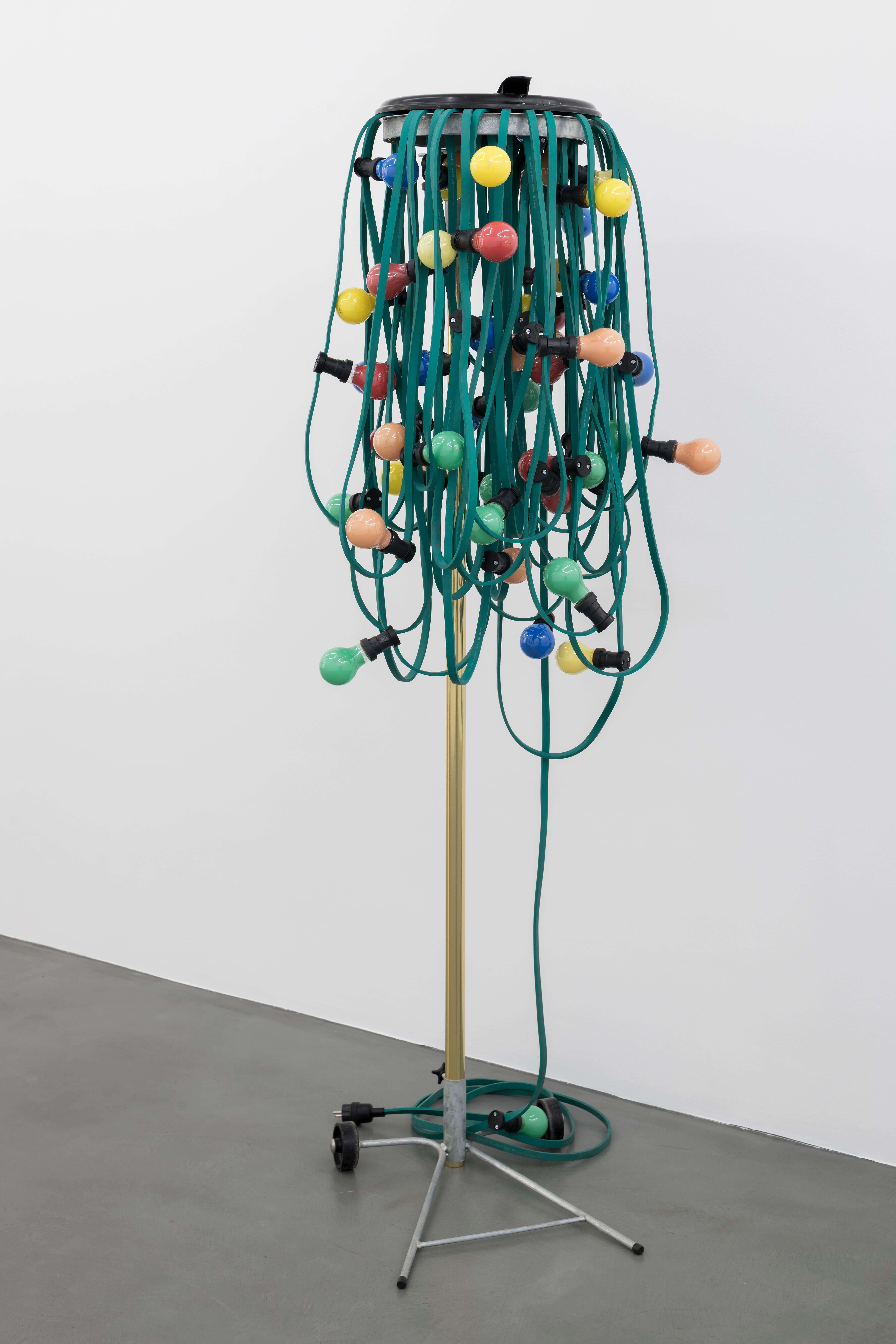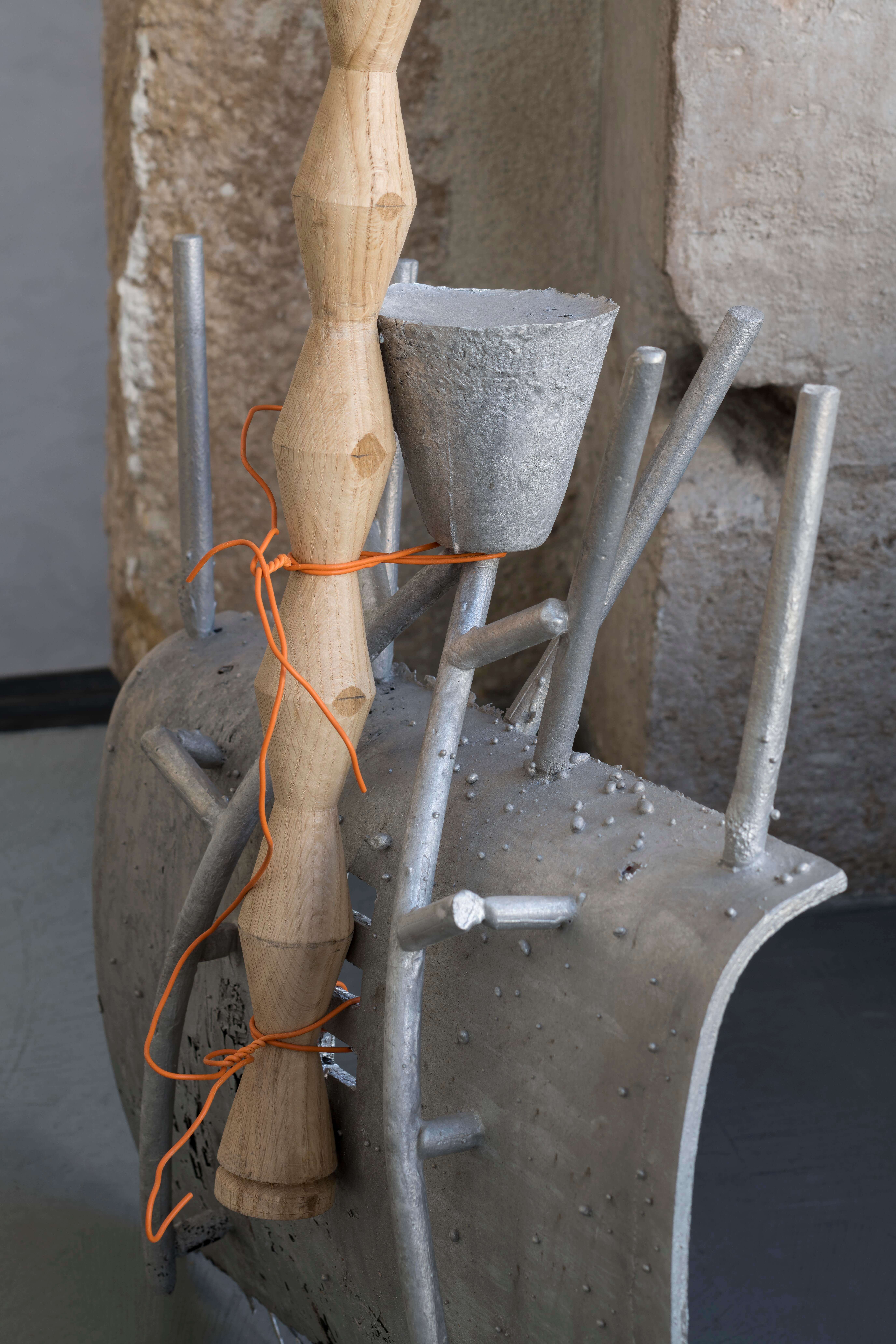 Hans Schabus, February Self, 2017, (detail) aluminum casting, wood, electric cable, 186 x 51 x 58 cm