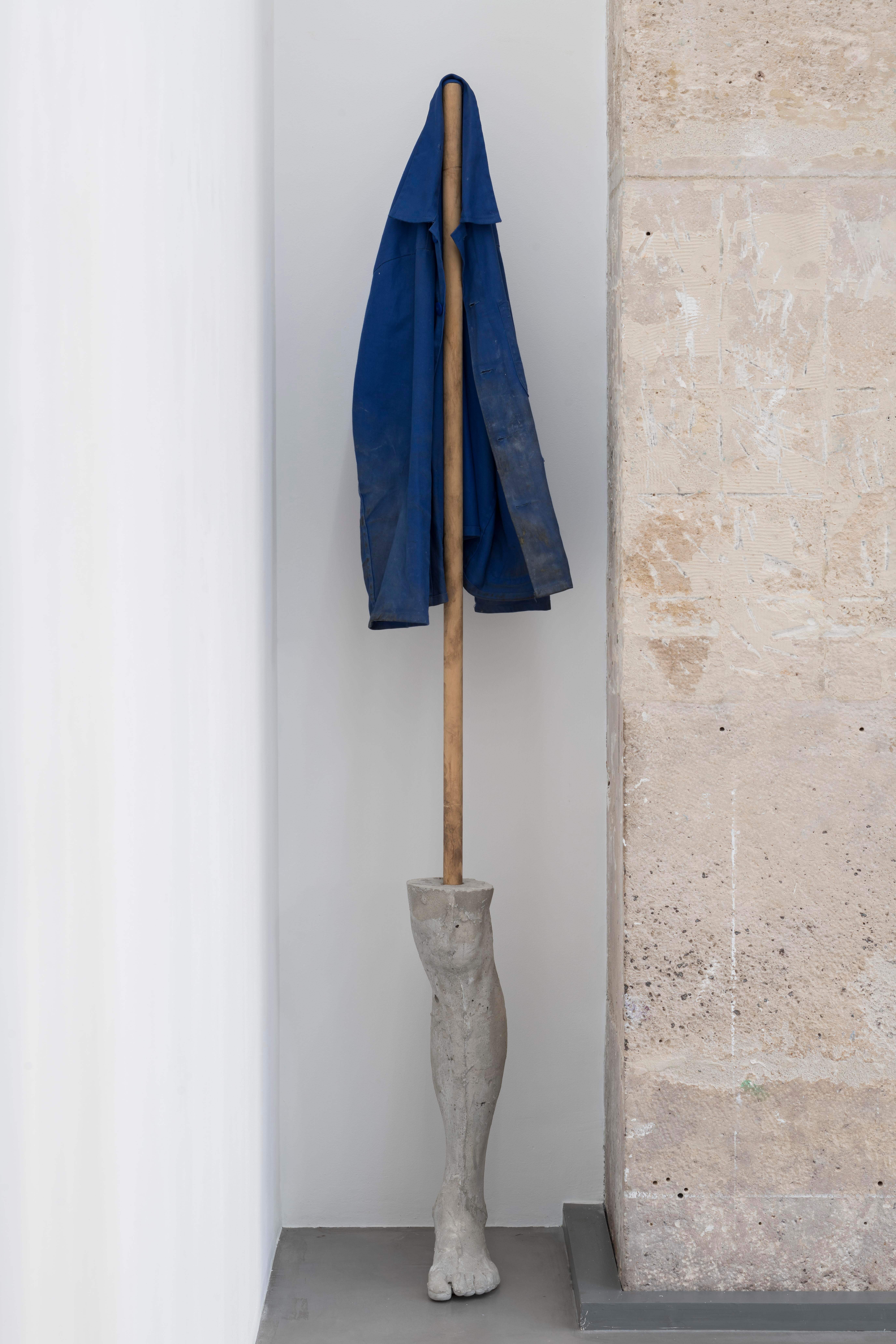 Hans Schabus, May Self, 2017, concrete casting, broomstick, work jacket, 186 x 37 x 39 cm