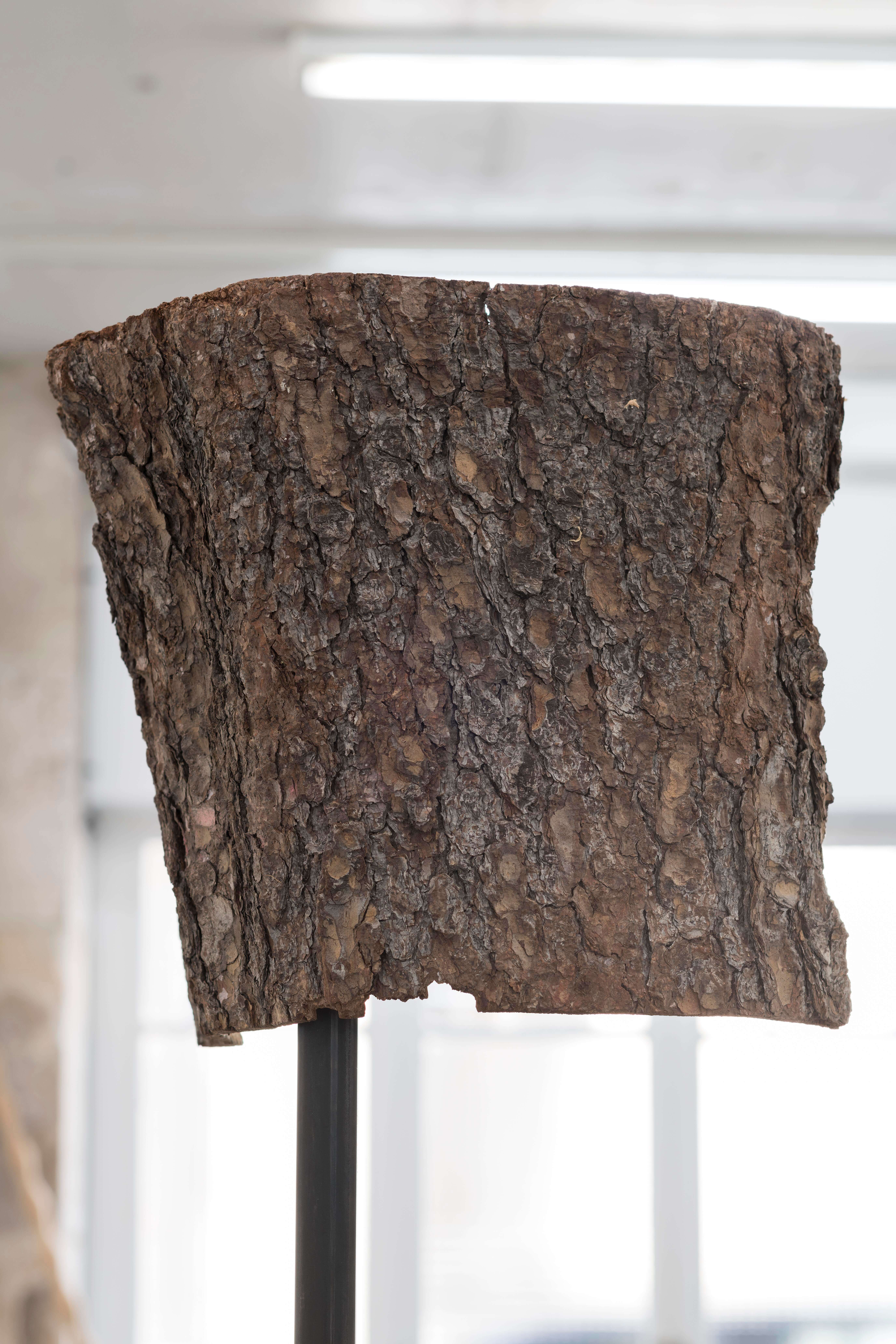 Hans Schabus, June Self, (detail) 2019, steel, bark, lace, 186 x 63 x 58 cm