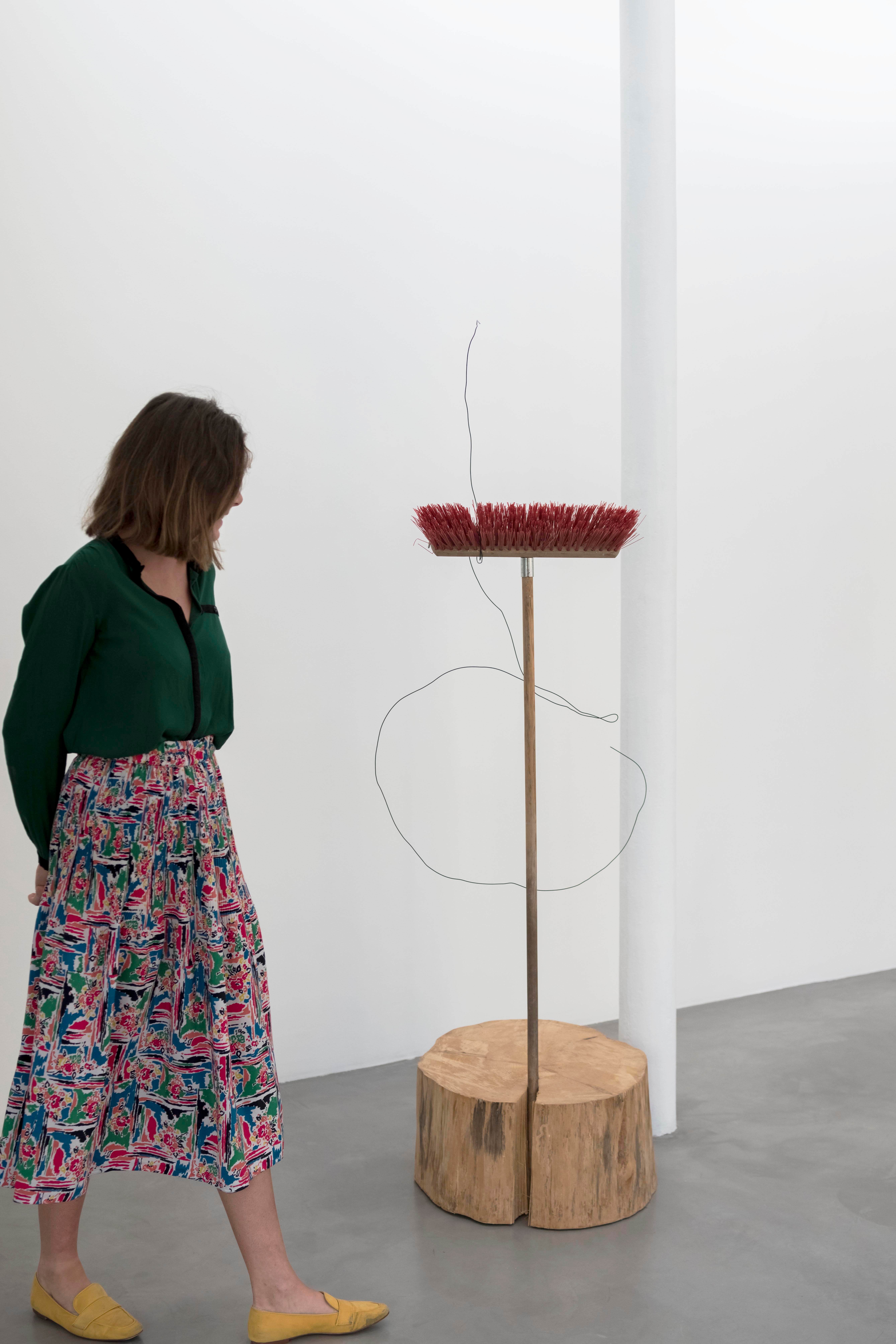 Hans Schabus, December Self, 2017, (detail), tree trunk stump, broom, iron wire, 186 x 58 x 66 cm.
