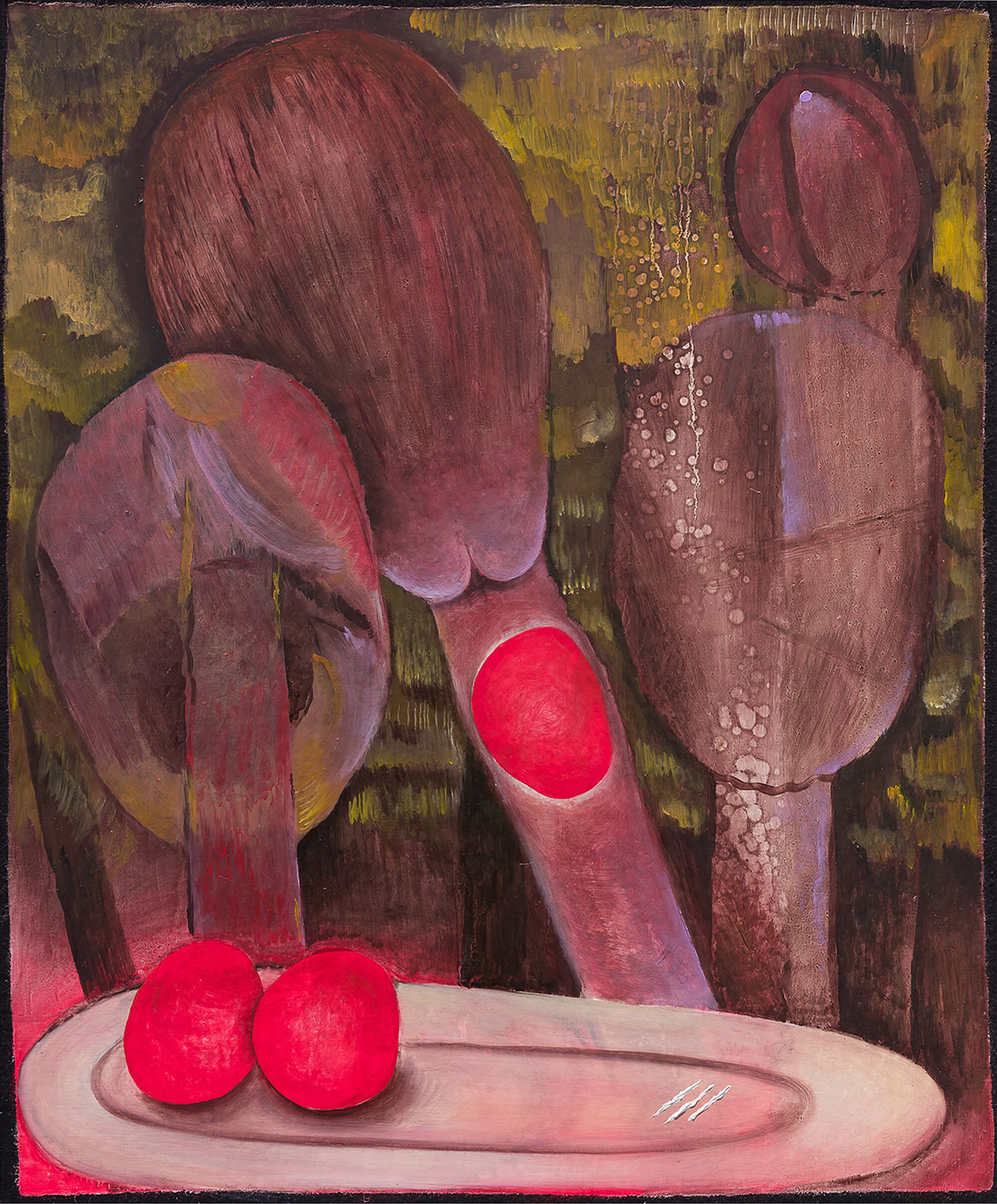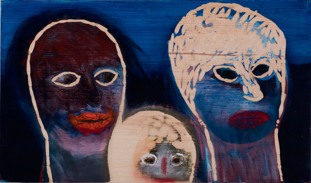Miriam Cahn, papamamakind, 2018 + 21.4.19, oil on wood, 40 x 68 x 2 cm