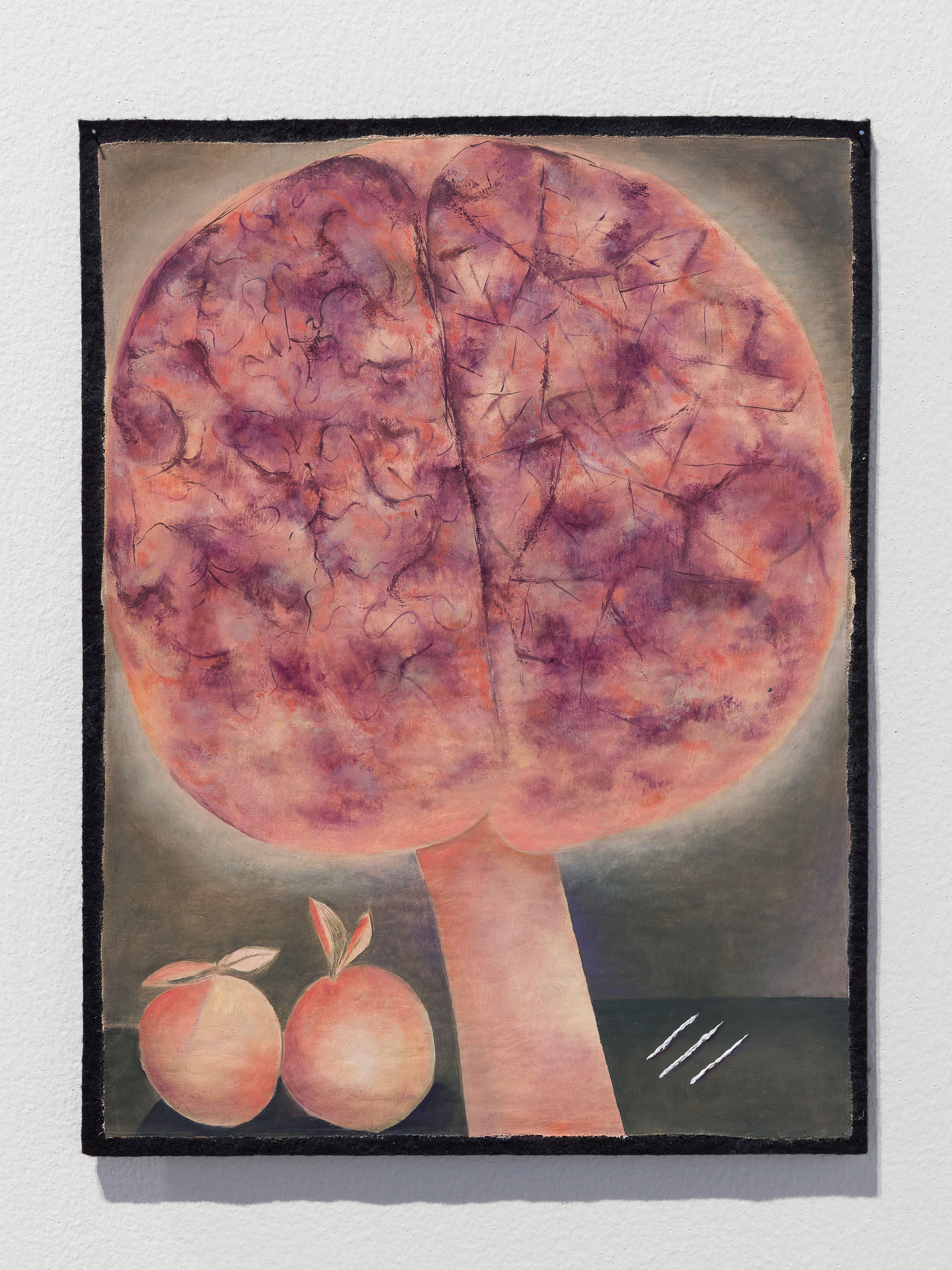 Some of these themes are reproduced in Franz Erhard Walther’s textile pieces, which inhabit a performative potential that interacts directly with the viewer through processes of activation. Their materiality, often relating to the corporeal interaction of those perceiving them, are in dialogue with Miriam Cahn’s paintings, where the body is represented in different forms. From small portraits imbued with a ghostly presence that capture the human condition, her paintings are hung at eye level to allow the viewer to be directly confronted with the eyes of Cahn’s personas. William Anastasi is one of the founders of Conceptual Art with, as well, solid connections in his earliest works to Minimalism. In his work Anastasi delicately dissects the differences between seeing and perceiving.