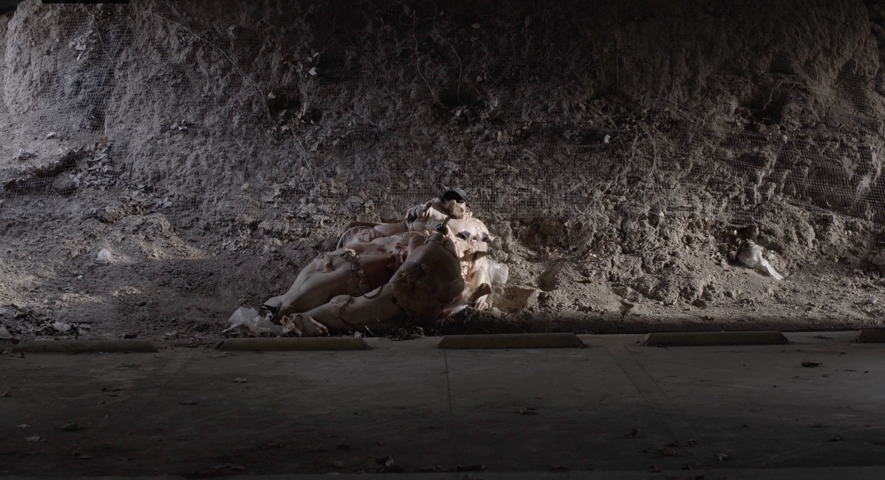Diego Bianchi is interested in how we are connected to objects and how they affect our everyday life. With this work, Bianchi create a locus where the organic is estranged, and the industrial is anthropomorphic. For his video Inflation 3, Bianchi processes discarded objects, mostly car parts, and organic matter such as bioplastics, trying to force integration between conflicting worlds. The structures are complemented by the familiar, though often obscured sounds of the by-products of living bodily systems in their normal day-to-day functions, such as snoring, passing wind, exhalations and sighs. These sounds become the soundtrack to a series of videos where the adventures of peculiar characters with exceeded bodies were recorded. Creating environments that maintain an abstract quality mixed with precarity and humor, Bianchi’s fictional machinery of work replicates the process of the digestive system.