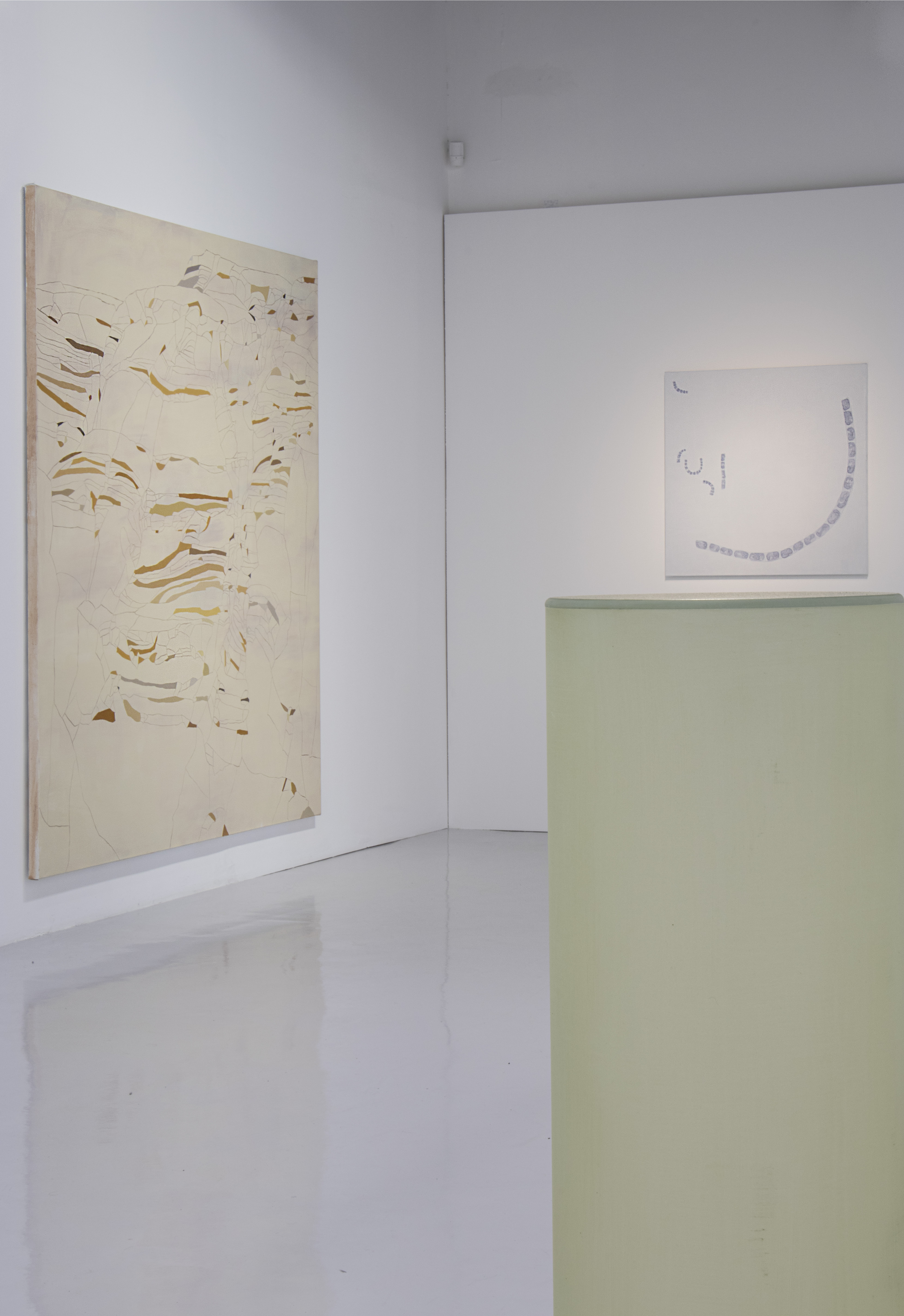 The discussion that gave rise to this podcast was recorded during the setting up of her first exhibition at the Jocelyn Wolff gallery.