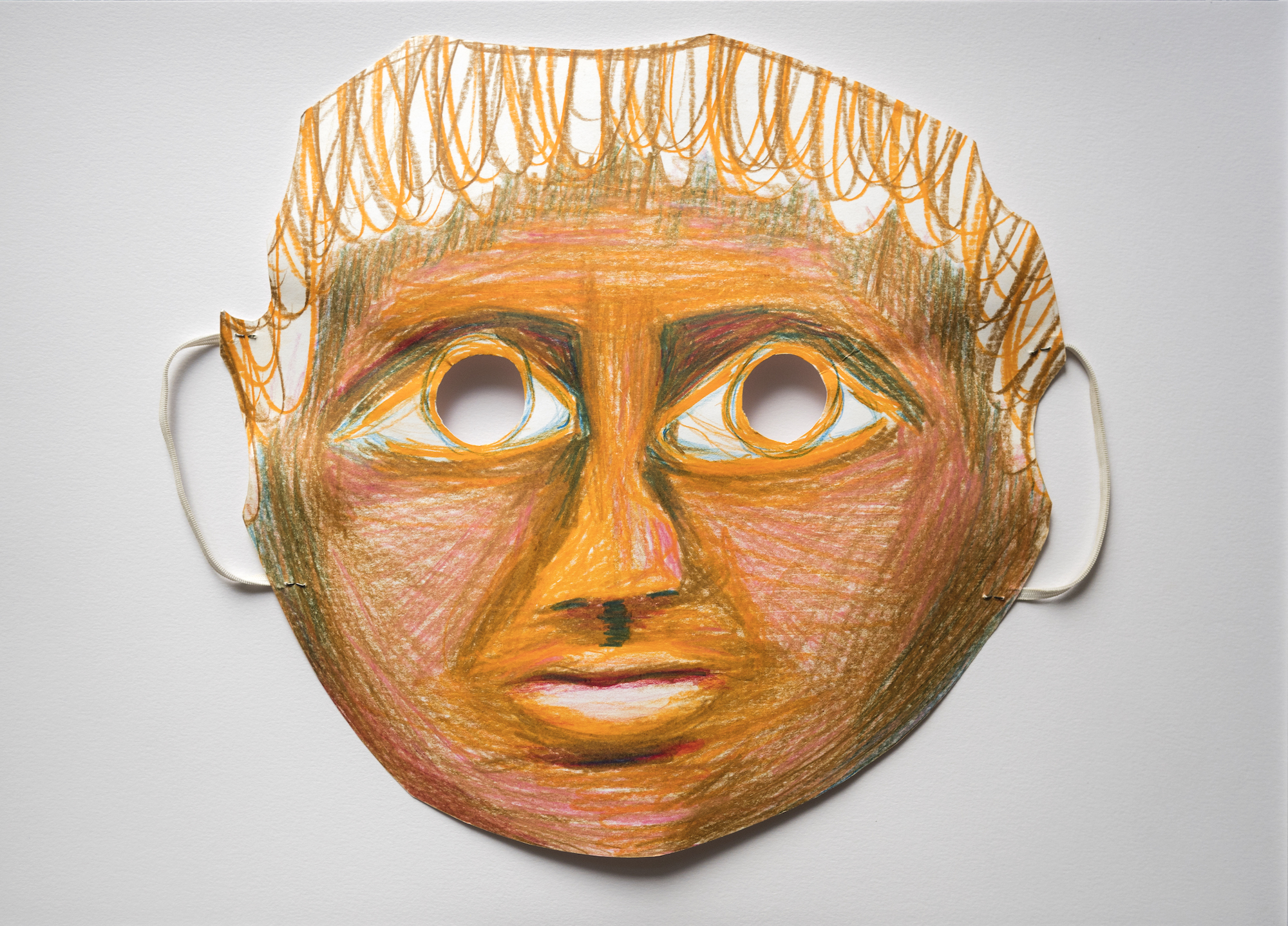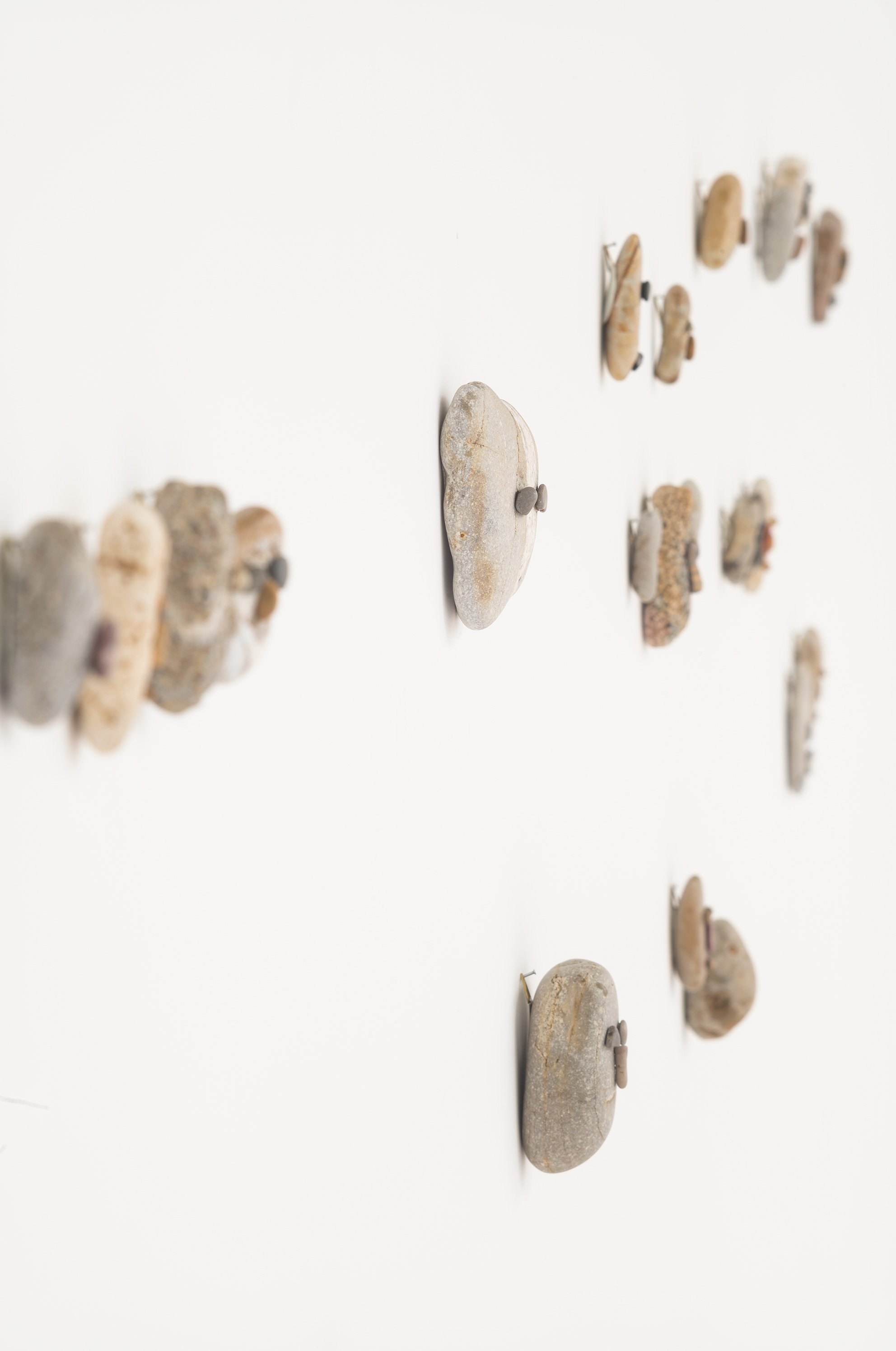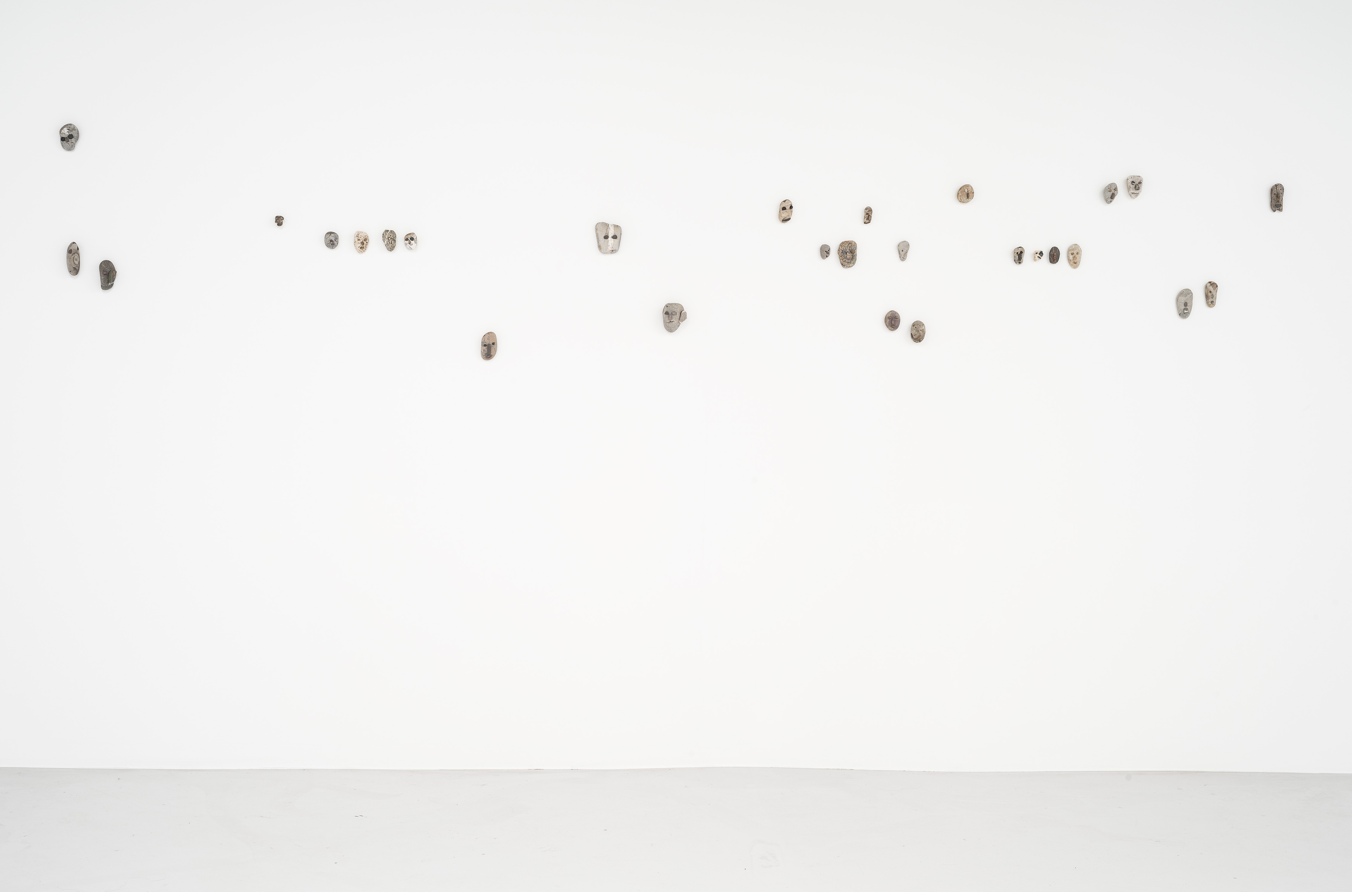 So the camellia flowers from the garden of Villa Aldobrandini are hidden between the bodies, behind the cloud of flowers in the Pavilion of Wild Pinks (2021) drawing, and the pyramid of Cestius appears in the middle of the architectural forms of Now and the Past (2021): two Roman remembrances captured by the artists. Behind the masks of characters or landscapes, inspired by the pandemic in 2020, and worn during the performances, we discover «accumulated information and inspiration,» as the duo puts it, the memory of the subject and the potential of a double, screens and interfaces. L’esprit de notre temps (video, 2020-2021) bears witness to this use of the mask and the relationship between the artists and their environment, here the Roman city. Finally, behind the assemblages of stones, whose titles often evoke their original site, the relationship of the artists to their environment is expressed once again, as well as a feeling of spontaneous recognition, a figural presence that crisscrosses their entire practice, between stylised bodies and carnivalesque faces. This imaginary projection by the artists reflects their embodied memory of the body and the subject, and, in so doing, a recognition of otherness, this “otherness [that] is experienced by passing through gestures, by an incorporation,” when “bodies seem to seek a beyond-gesture in a confrontation with the elements of nature, objects, other bodies” (Anne Creissels, 2019). However, about it is less a matter of confrontation than of attention to external elements.