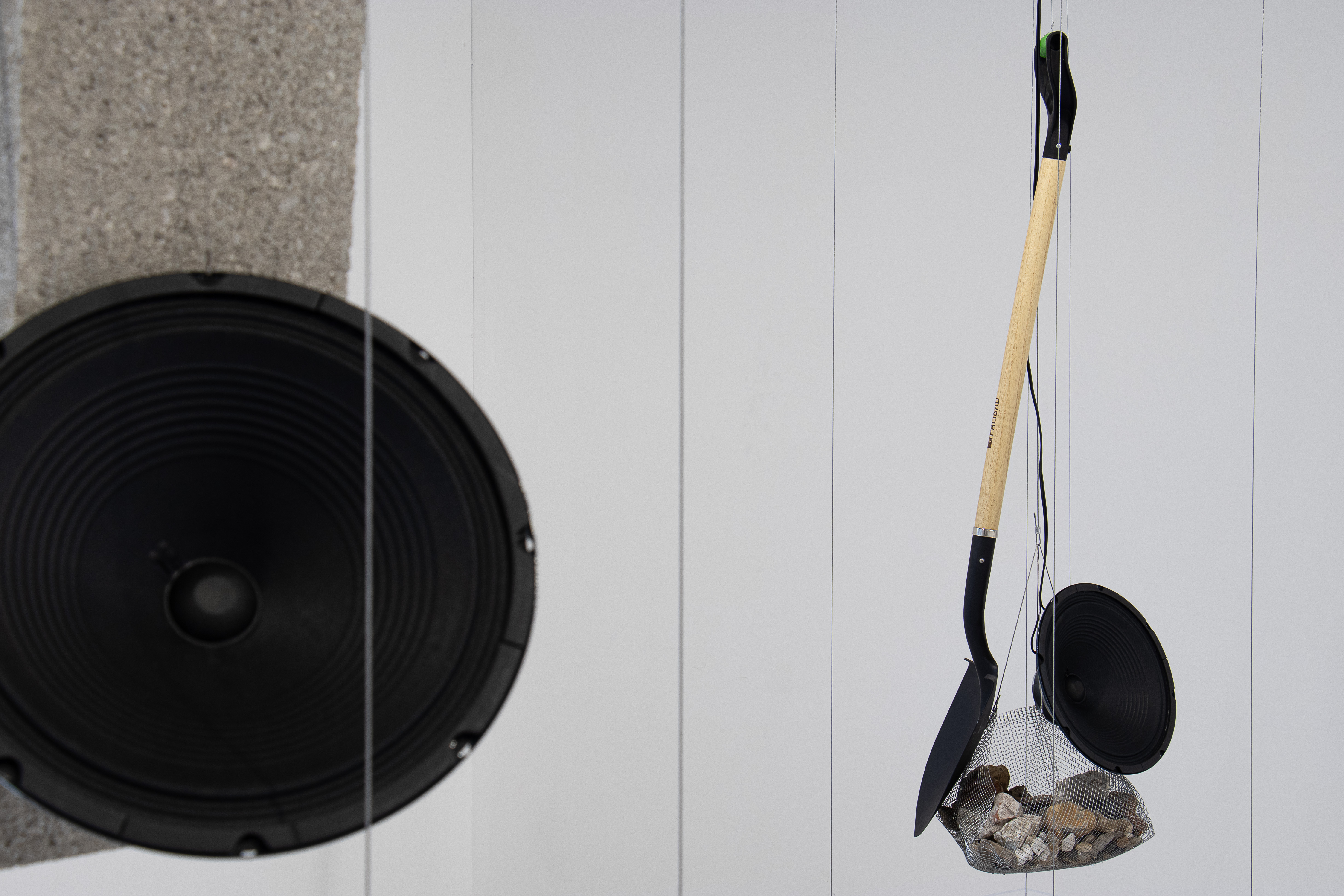 William Anastasi, "Pick & Rocks", 1964, pick, rocks, speaker, sound recording, recipe (protocol). Photos by Chloé Philipp